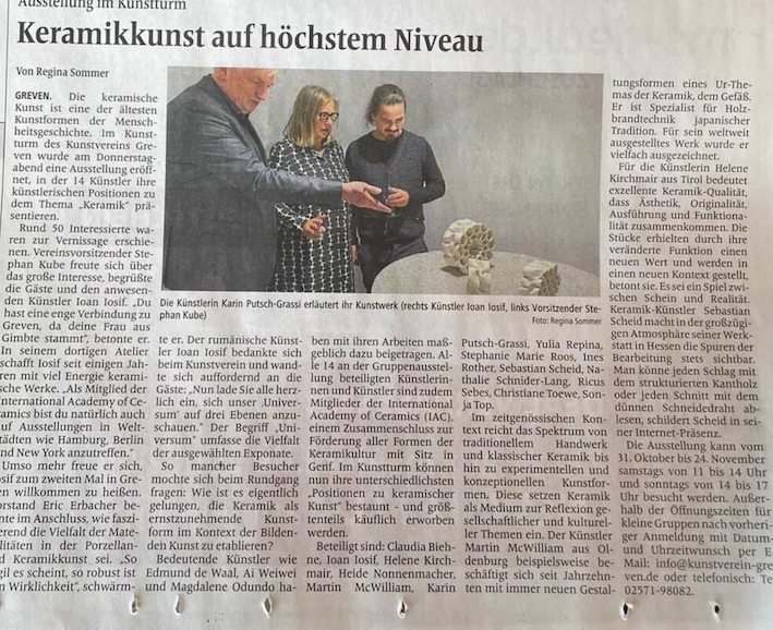 In dieser Gruppenausstellung werden 14 künstlerische Positionen präsentiert, die sich mit dem Material _Keramik“ befassen. Alle beteiligten Künstlerinnen und Künstler sind Mitglieder der International Academy of Ceramics (IAC), einem Zusammenschluß zur Förderung aller Formen der Keramikultur mit Sitz in Genf.